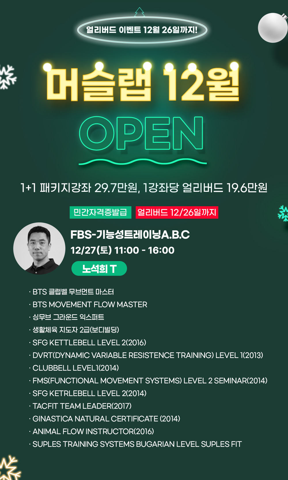 [ 기능성트레이닝 A.B.C 과정 + PNF스트레칭 전문가 과정 ]( 서울시 서대문구 신촌로 155 해암빌딩 3층 )( 접수기간 : 2025-12-08 ~ 2025-12-26