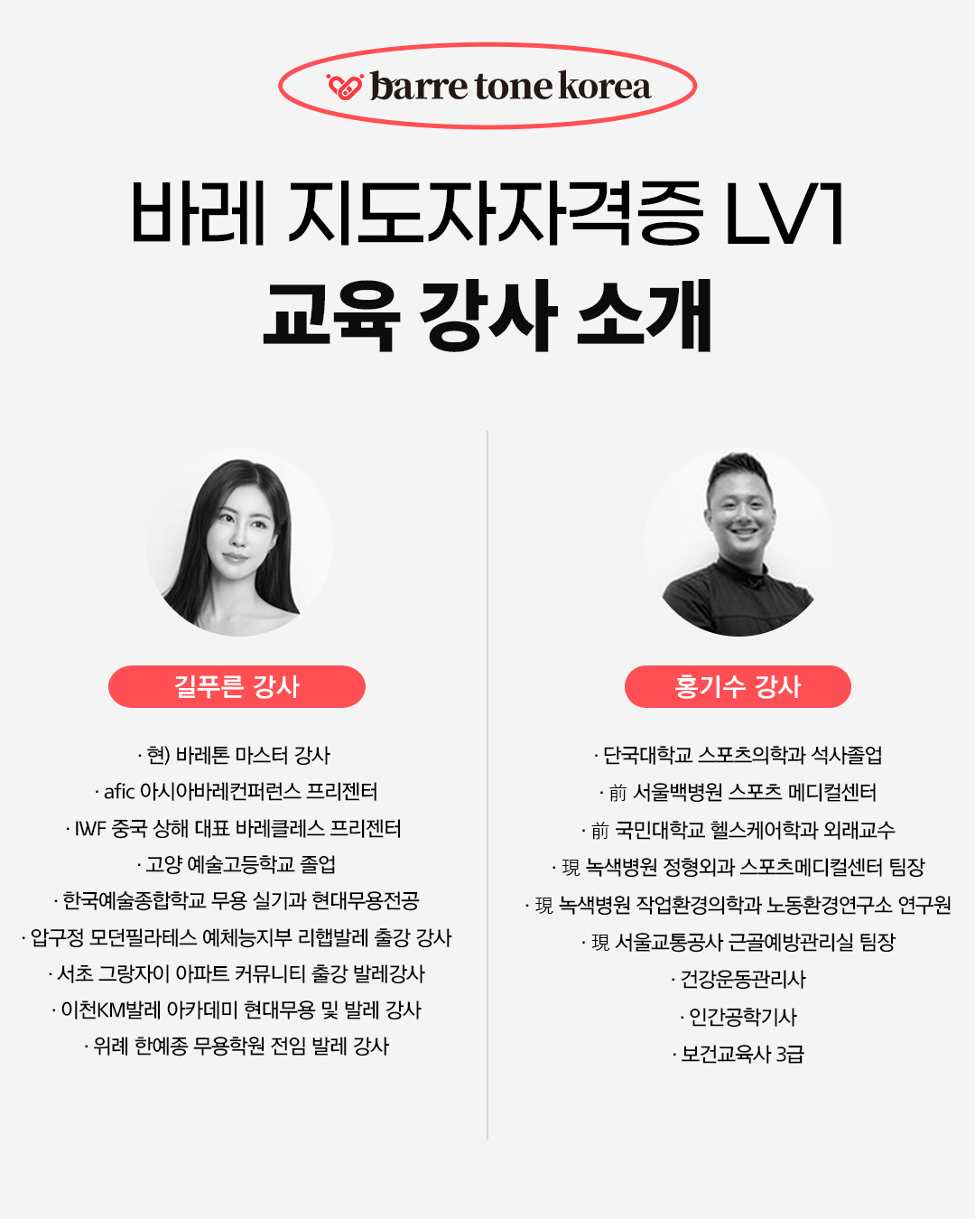 요즘 핫하게 뜨고 있는 바레 강사 자격증, 바레톤 코리아에서는 체육학 박사진들과 한예종 출신의 최고의 전문가들이 이끄는 교육 제공하고 있습니다.